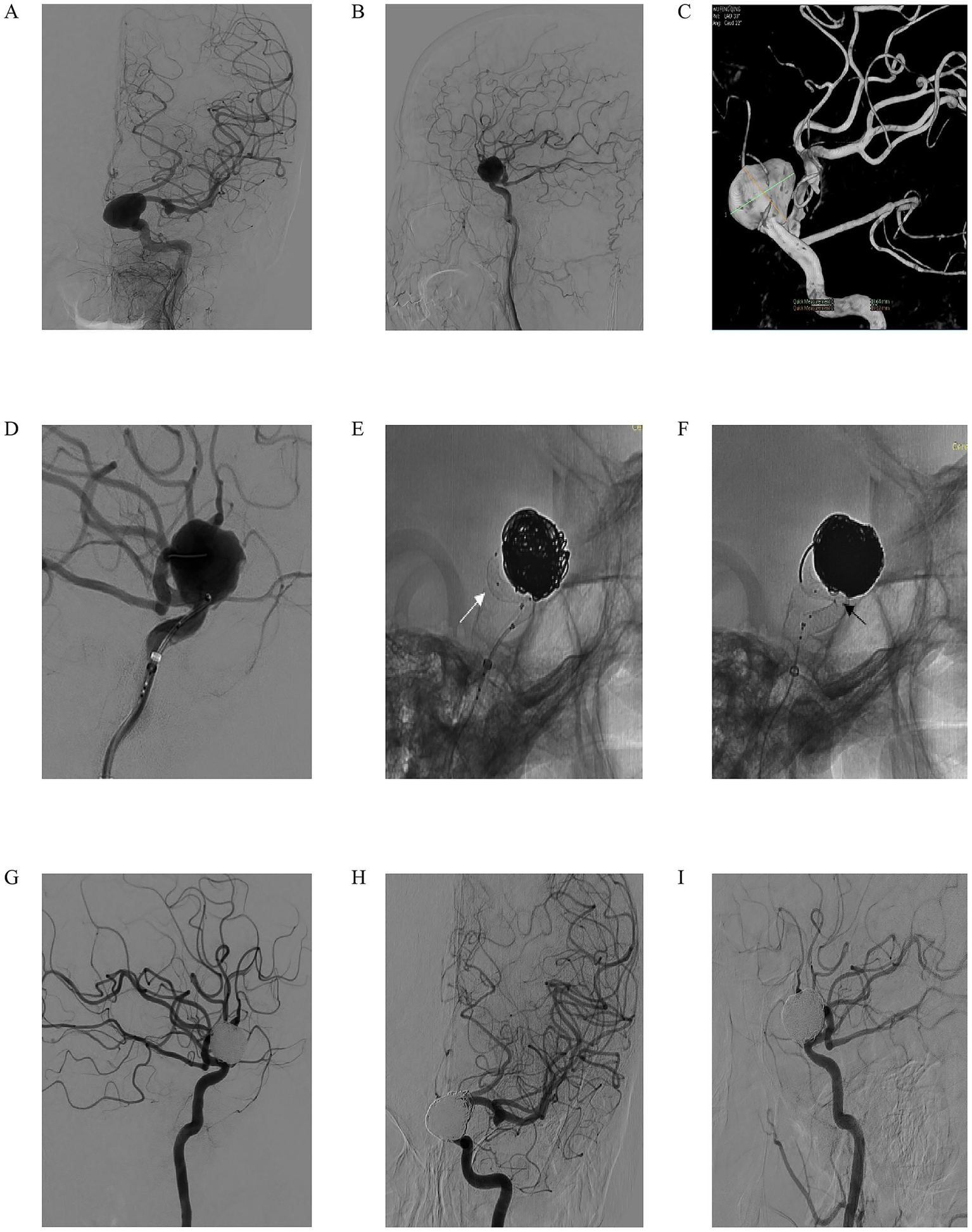 The exclusion criteria were as follows: (1) age <18 years or >80 years; (2) life expectancy <3 years due to severe comorbidities (e.g., terminal malignancy, end-stage organ failure); (3) ruptured, mycotic, or infected aneurysms; (4) severe intracranial atherosclerotic stenosis (>70% lumen reduction) adjacent to the aneurysm; (5) known hypersensitivity to iodinated contrast media or cobalt-chromium alloys; and (6) contraindications to antiplatelet/anticoagulant therapy.