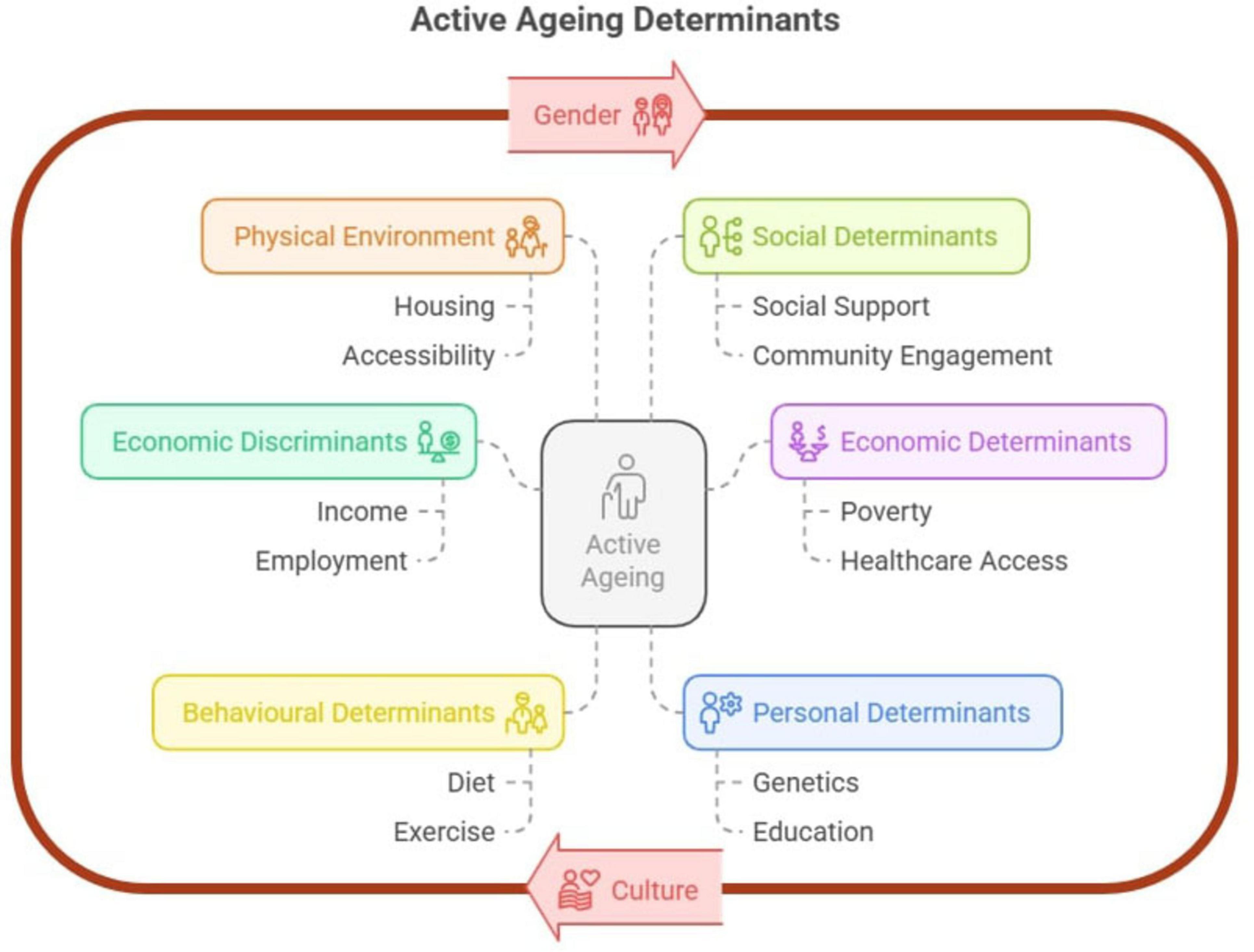 Some frameworks takes on a broader scope such as the political economy of aging (14), whilst theories like successful aging framework (15) adopts a microscope that is embedded in individual’s aging experience.