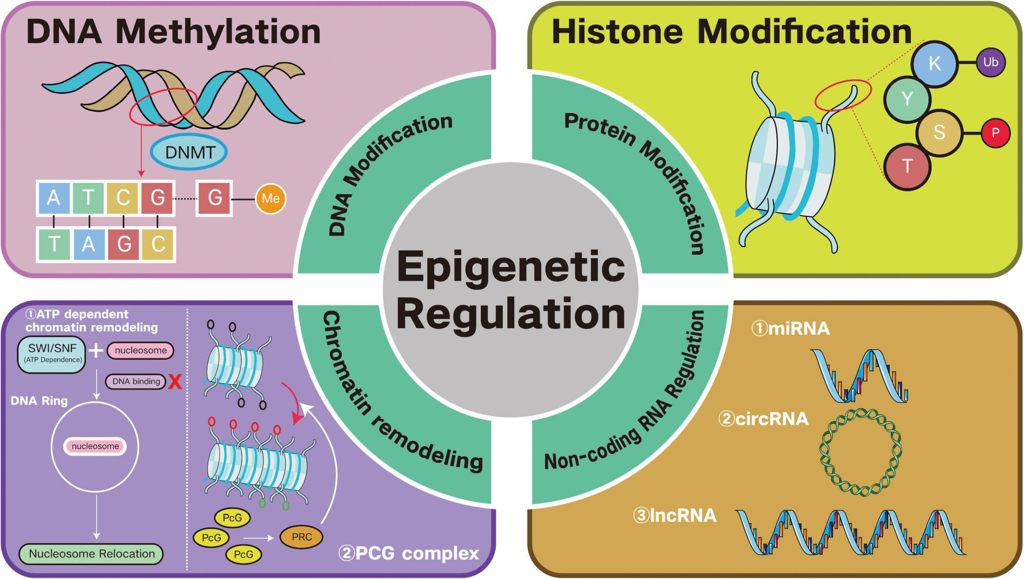 There are varieties of forms and mechanisms in epigenetic inheritance and its regulation. Here we choose some most common ones to introduce.