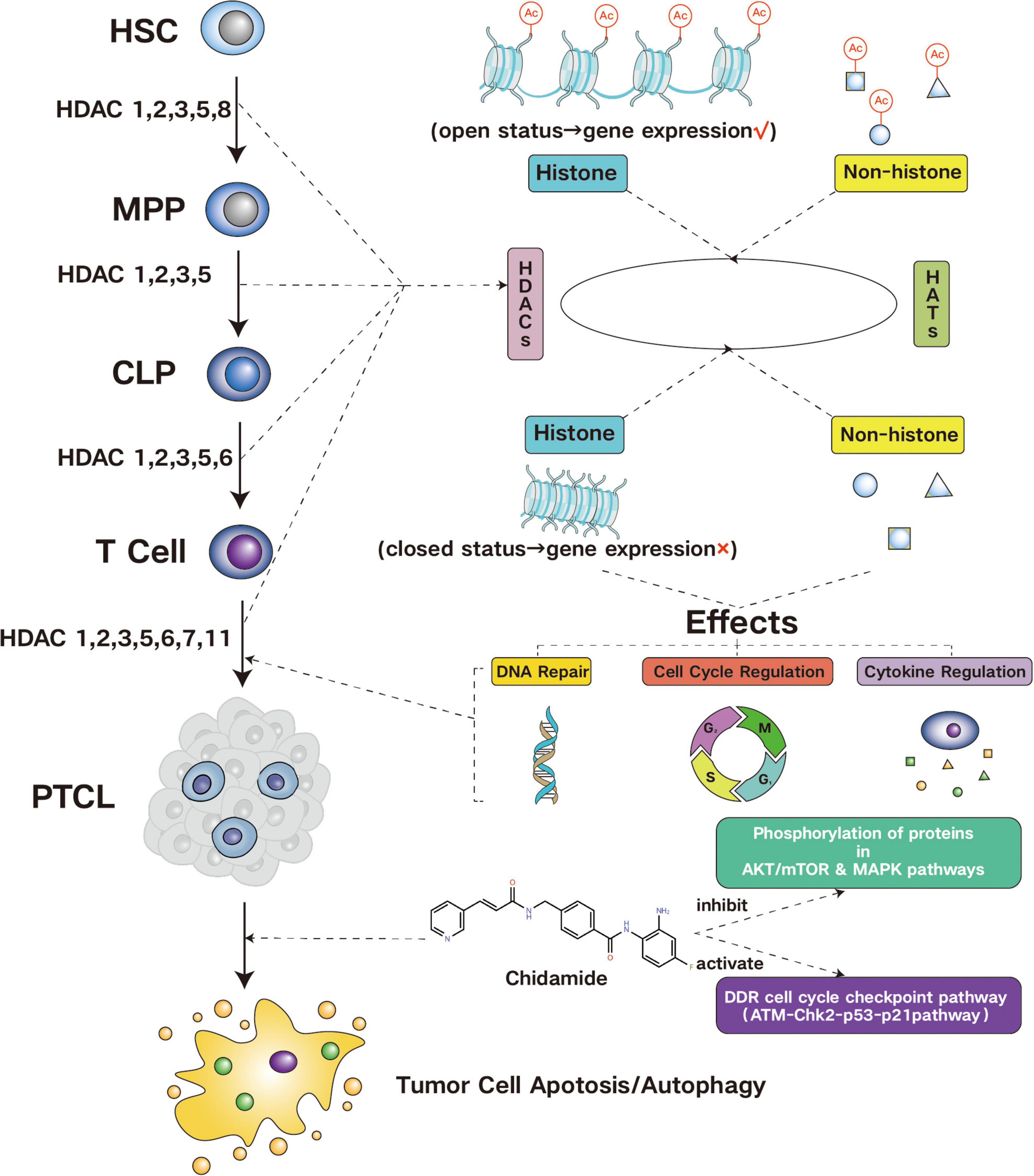 The association between HDAC and PTCL and a brief introduction to the mechanism of Chidamide is shown in Figure 4.
