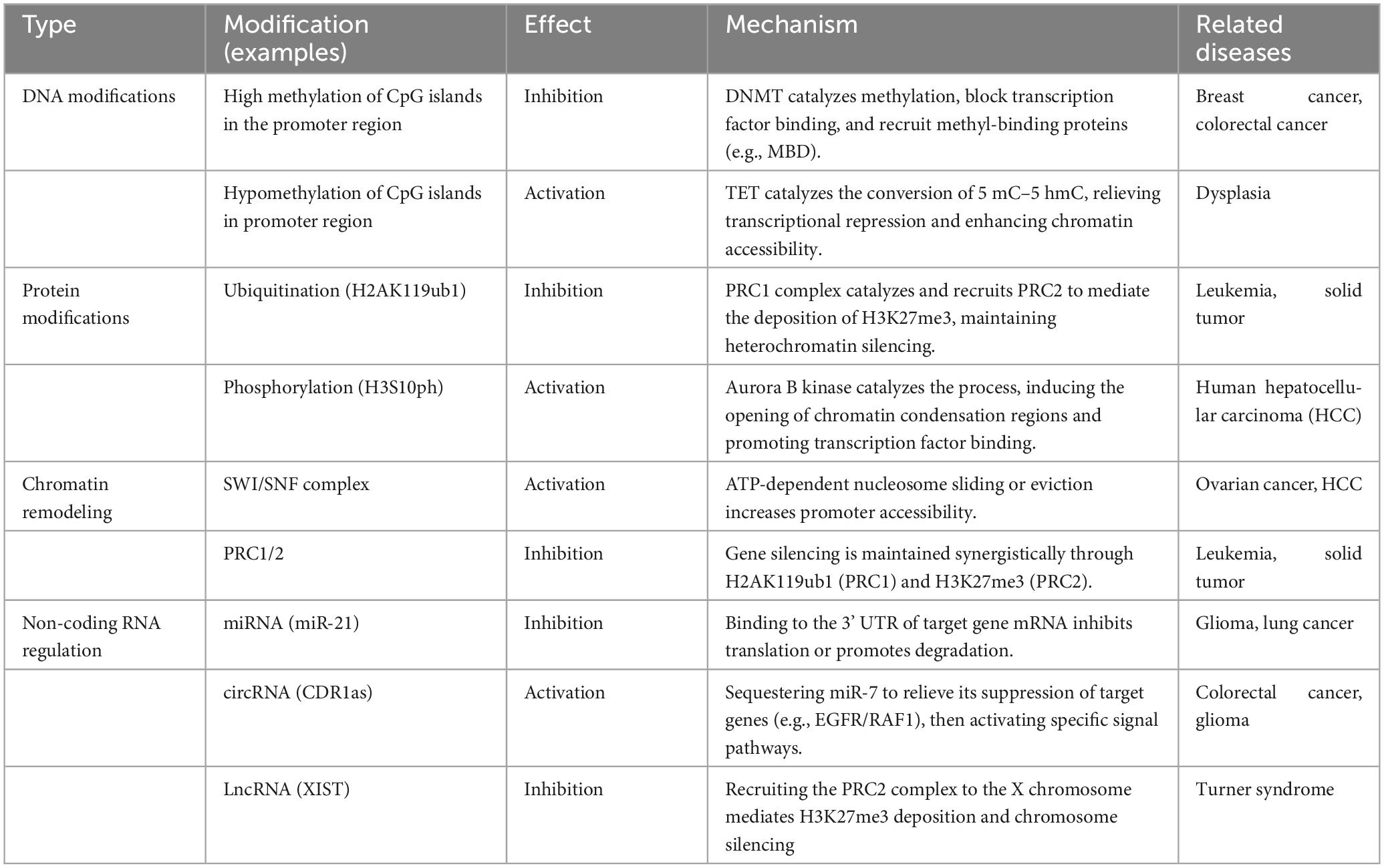 Improving the efficiency and stability of epigenetic editing represents a significant technical challenge currently faced (76). In the treatment of various diseases, it is essential to ensure that epigenetic editing tools can efficiently target specific genes and that these editing effects can be maintained stably over the long term.