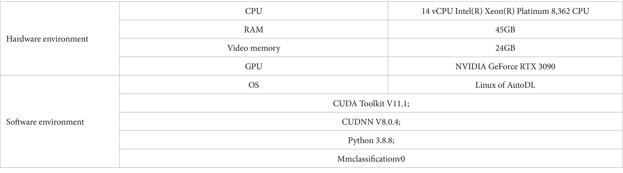 All experiments were conducted in a high-performance computing environment with the following hardware and software configurations (Table 4).