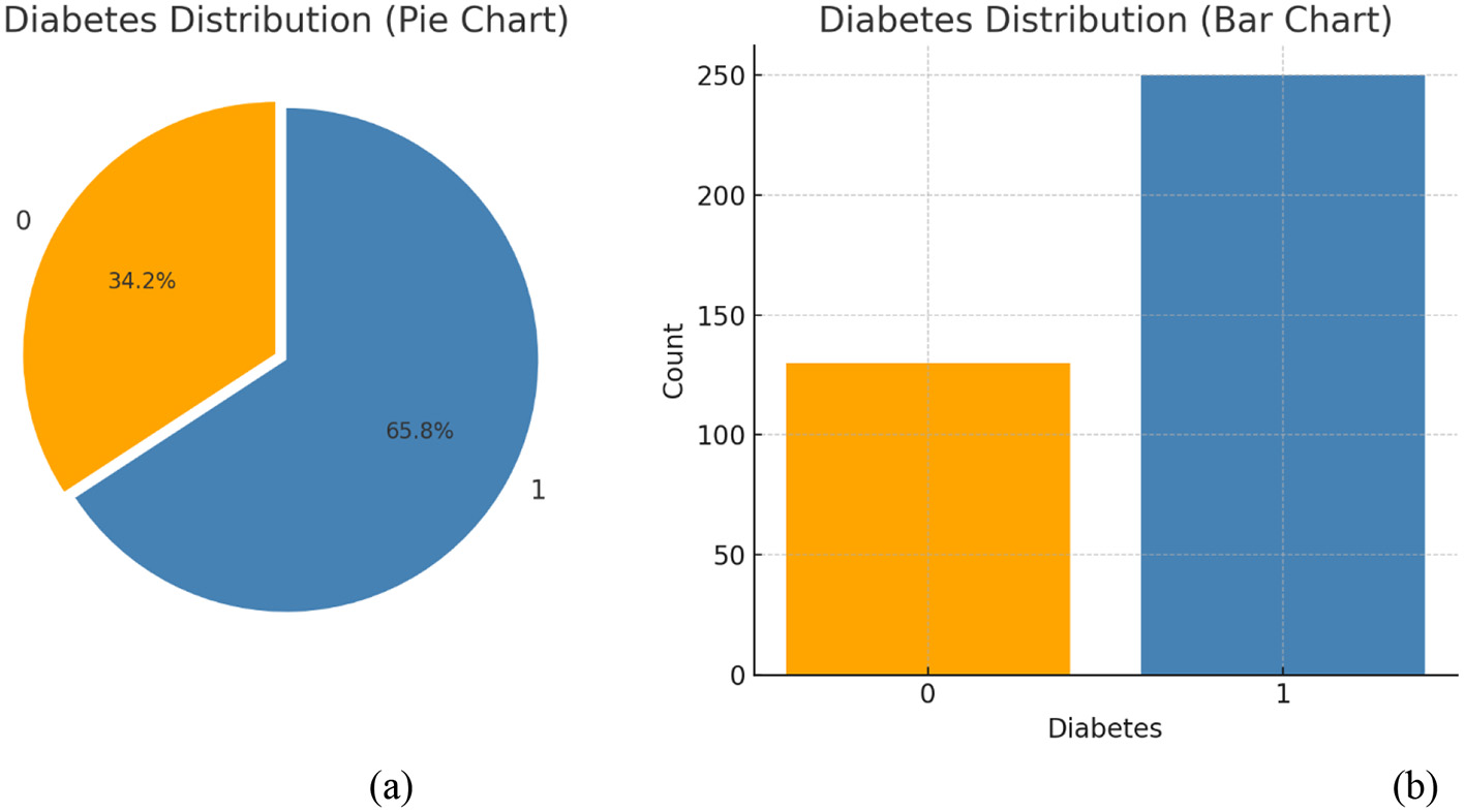 Diabetes mellitus (DM) is a dangerous chronic disease characterized by elevated blood glucose levels. It can arise due [124mm] Q10to genetic factors or environmental triggers (1). The disease occurs when pancreatic beta cells fail to produce sufficient insulin, impairing the body's ability to regulate glucose levels. Uncontrolled diabetes leads to severe complications, including damage to the kidneys, eyes, blood vessels, nerves, and heart. It also increases the risk of hypertension, foot ulcers, pancreatic disorders, and vision loss (2). Although diabetes affects individuals across all age groups, it has a pronounced impact on older adults. Common symptoms include frequent urination, excessive thirst, and increased hunger (3, 4). If left untreated, the disease can severely impact quality of life. In many developing countries, access to laboratory diagnostic tools such as fasting blood sugar tests and glucose tolerance tests is limited. This lack of early detection infrastructure contributes significantly to diabetes-related mortality (5, 6). Recent years have seen increased application of machine learning techniques (MLT) in disease diagnosis and prediction. MLTs are especially valuable in analyzing medical datasets and identifying patterns that support early diagnosis. They have been effectively applied in predicting diseases such as hepatitis, cancer, and tumors (7). The ability of MLT to derive meaningful insights from structured and unstructured healthcare data enables timely decision-making and personalized care (8).