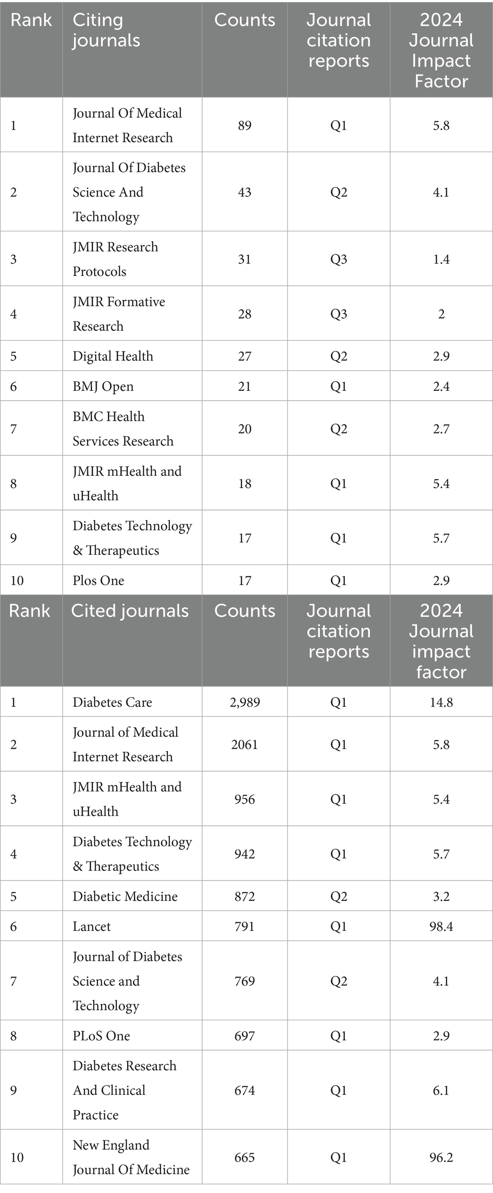 Table 3. Top 10 citing and cited journals for publications on digital management of diabetes, 2010–2024.