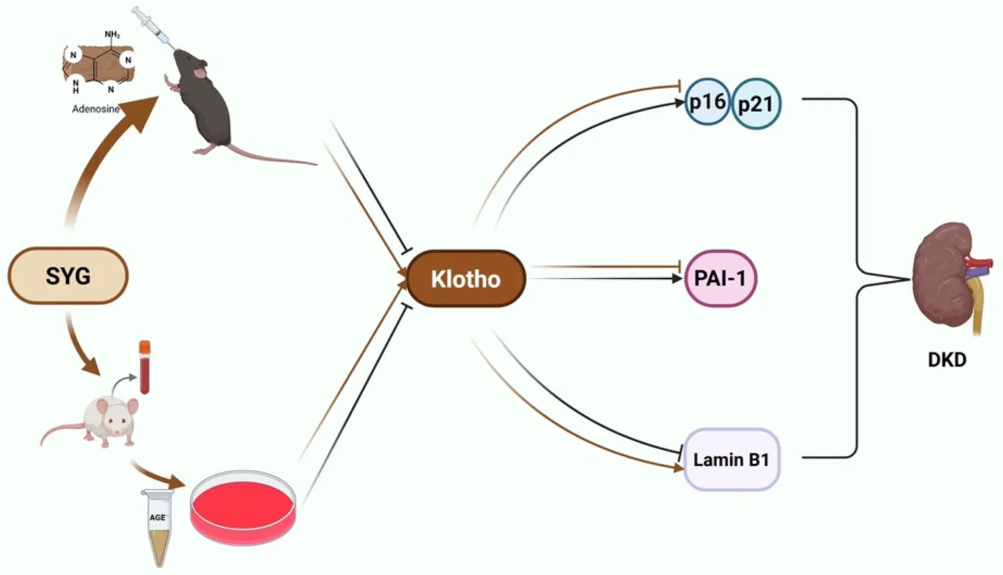 This study highlights the potential of SYG to alleviate cellular senescence in DKD by targeting the Klotho-mediated p16/p21 pathway. These findings provide a foundation for developing senescence-focused therapies in chronic kidney disease management.