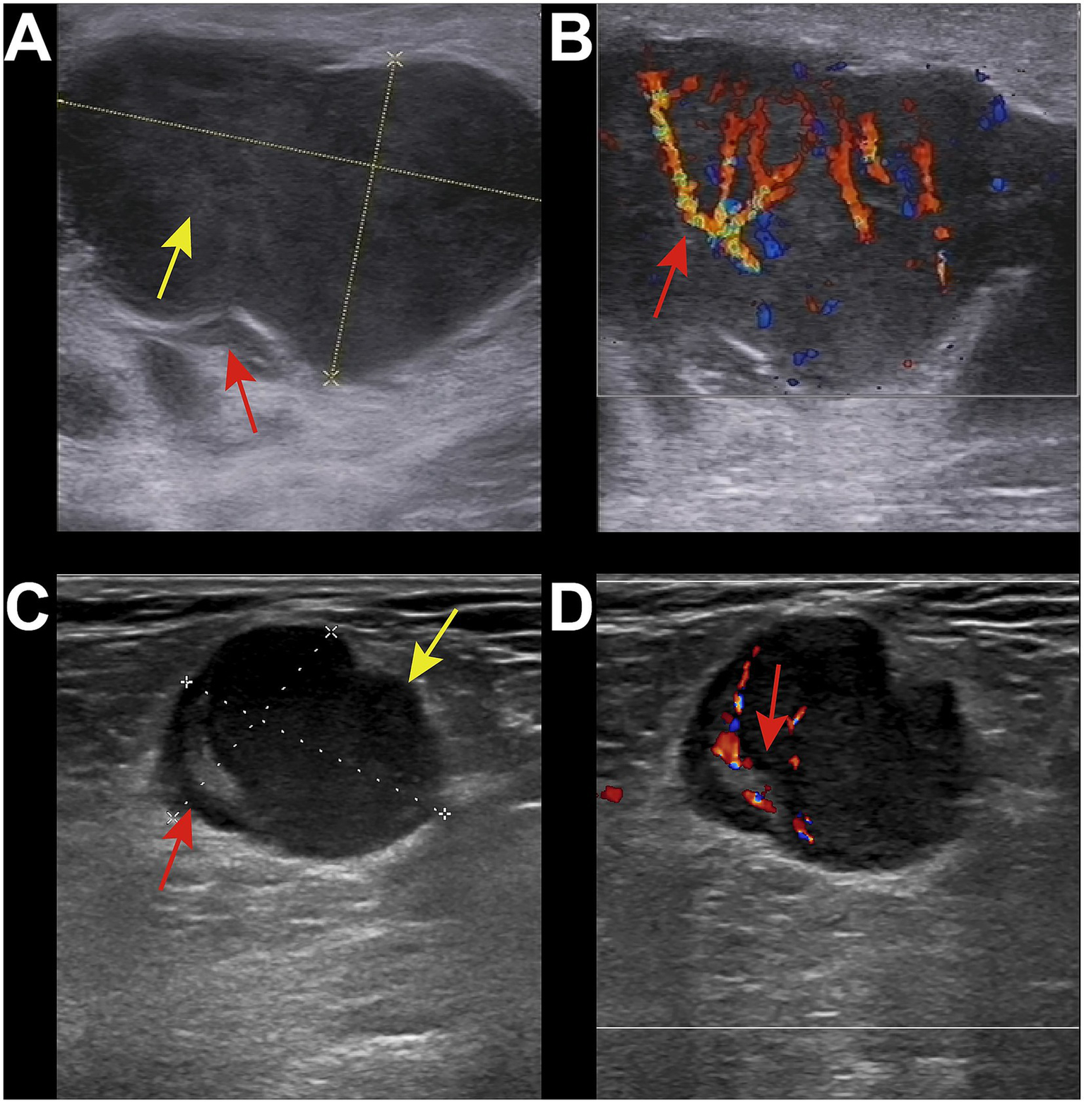 | Hypoechoic | 117 (81%) | 100 (78%) | 17 (100%) | |