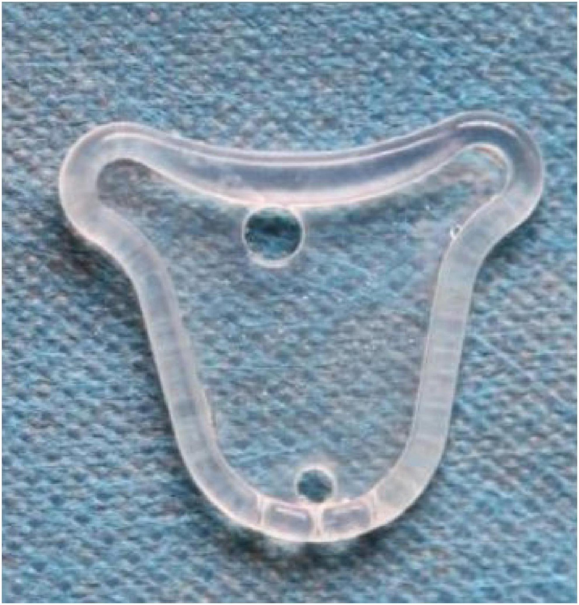 The silicone rubber stent is a uterine-type sheet device (Figure 1). The lower end of the stent is equipped with three drainage grooves, which is more conducive to the drainage of fluid in the uterine cavity and reduces the occurrence of intrauterine infection. In more than 30 years of prior clinical practice, autocross-linked hyaluronic acid (ACP) gel and Foley balloon catheters have been recommended in the European Society of Gastrointestinal Endoscopy practice guidelines as Grade A (14). It has also been reported that the combination of a Foley balloon catheter and an intrauterine device (IUD) may be more effective in preventing readhesion after TCRA than an IUD or Foley balloon catheter alone (15). However, the effects of these methods have been questioned. A previous study revealed that the release of copper ions produces an aseptic inflammatory response that may be detrimental to the treatment of uterine adhesions (16, 17). The Foley balloon catheter is inexpensive and simple to use, but the shape of the balloon does not match the uterine cavity, resulting in the inability to separate the adhesions on both horns of the uterus (18). Furthermore, prolonged intrauterine placement has raised concerns about the potential for increased rates of intrauterine infection.