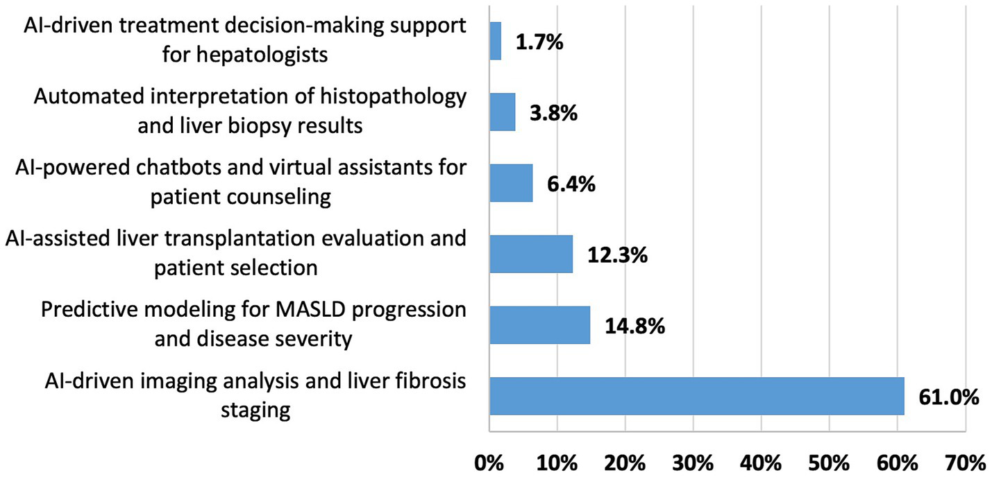 A cross-sectional online survey targeted hepatologists and gastroenterologists across 17 MENA countries. The survey assessed clinical and research applications of AI, perceived benefits, clinical and research use, barriers, ethical considerations, and institutional readiness. Descriptive statistics and thematic analysis were performed.