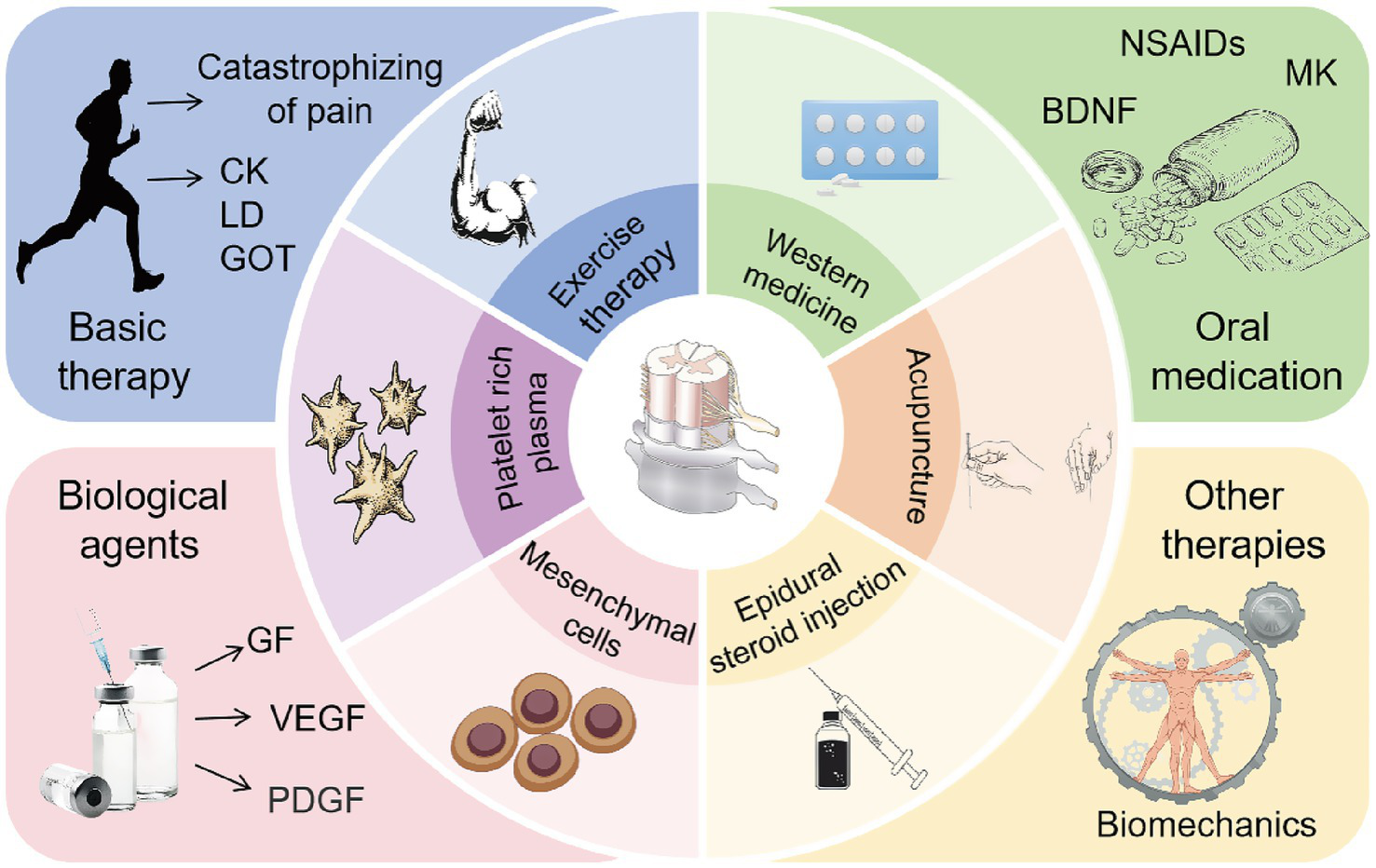 In systematically reviewing recent studies related to LDH reabsorption, the author found that its occurrence is closely associated with the size of the disc protrusion in LDH, which can be confirmed by imaging techniques such as computed tomography (CT) and magnetic resonance imaging (MRI). Its underlying mechanisms are closely related to inflammatory reactions, tissue vascularization, tissue dehydration, hematoma absorption, autoimmune responses, and cellular autophagy. Therapies such as bed rest, pharmacological treatment, exercise therapy, and epidural injections can facilitate this reabsorption process (9, 10). This article systematically analyzes LDH reabsorption from perspectives of clinical diagnosis, underlying mechanisms, and therapeutic approaches, aiming to provide insights and references for exploring the significance of LDH reabsorption in the clinical management of LDH.