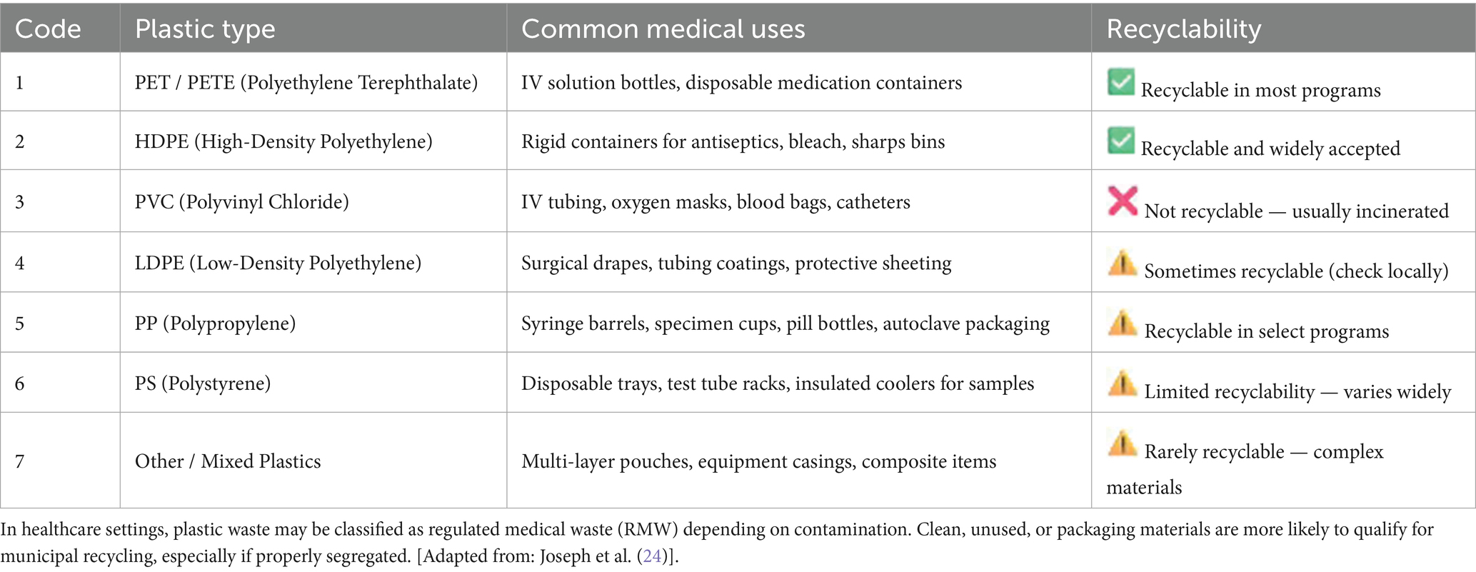 23. Healthcare Plastics Recycle Council. (2025) Leading the discussion on plastics recycling. Available online at: https://www.hprc.org/leading-the-discussion-on-plastics-recycling/ (Accessed July 25, 2025).