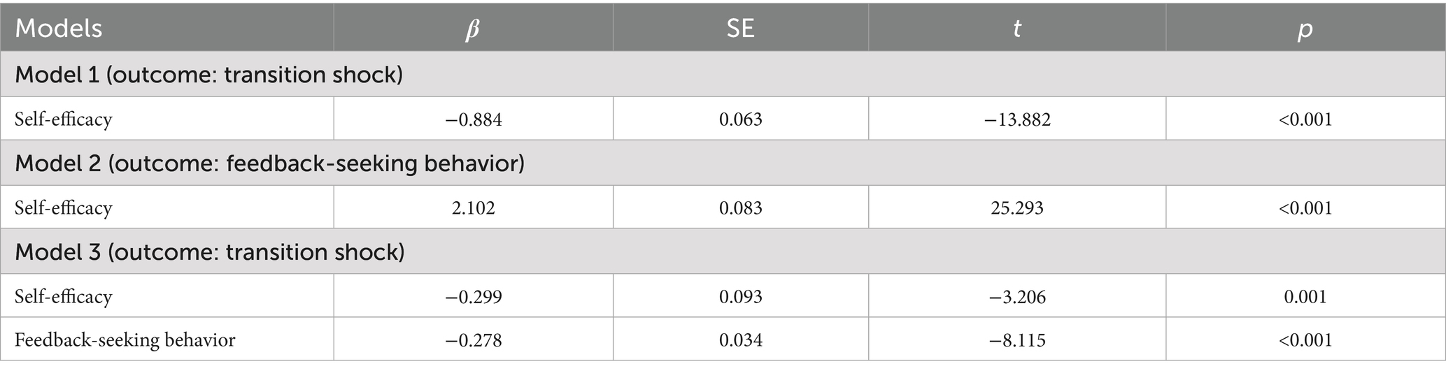 3.4 Mediation effect of feedback-seeking behavior on self-efficacy and transition shock