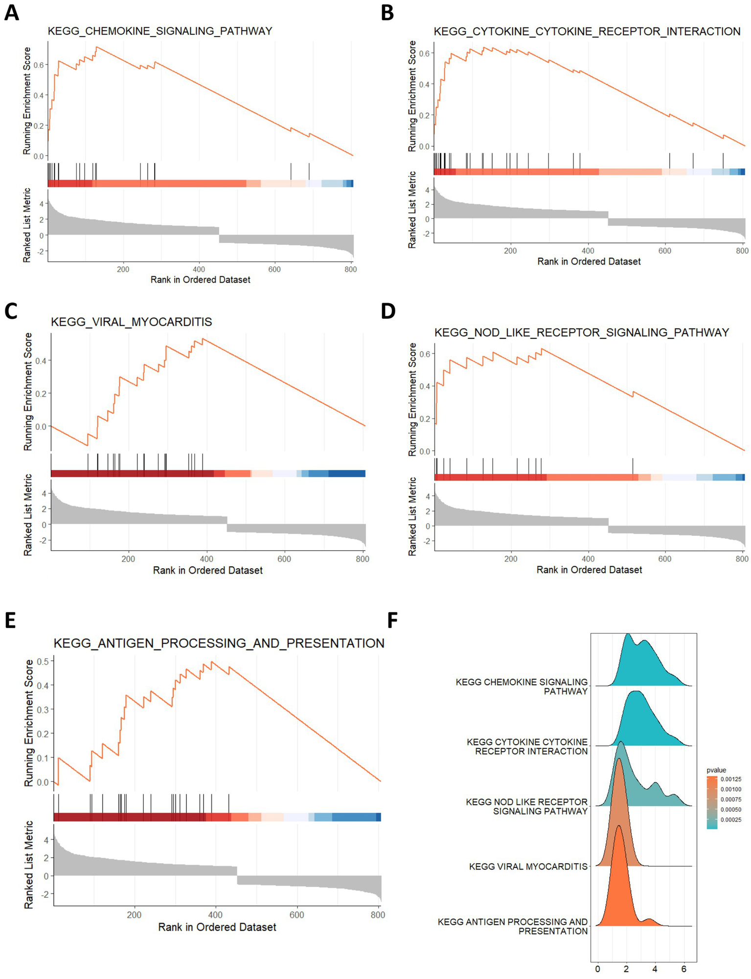 Gene set enrichment analysis of DEGs. (A–F) The top 5 enriched KEGG pathways for DEGs by GSEA.