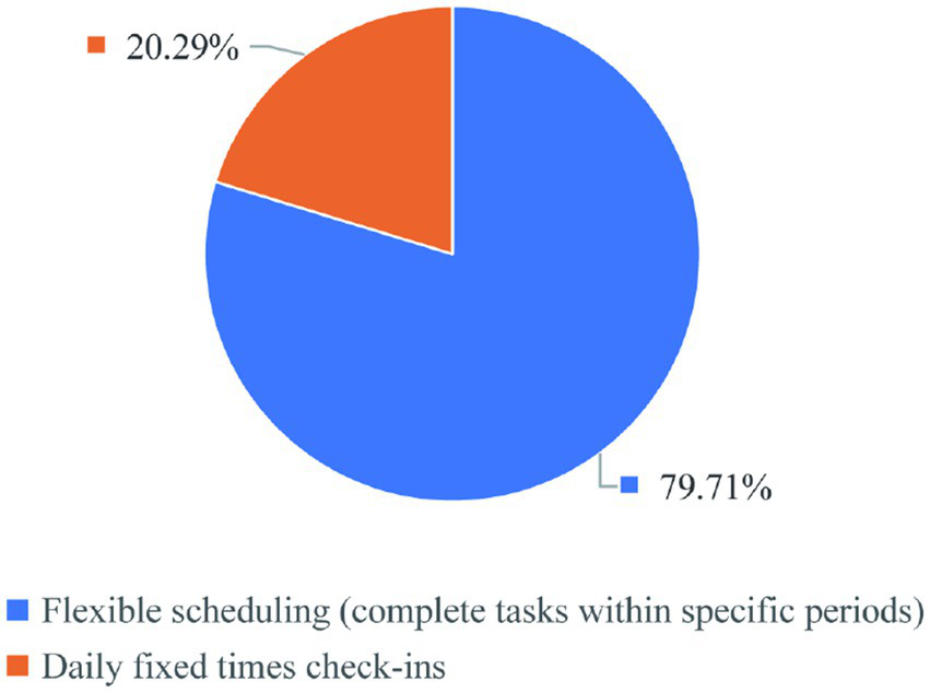 | Q10 | What is your current work status? (Single-Choice) | Flexible scheduling (complete tasks within specific periods) Daily fixed times check-ins |