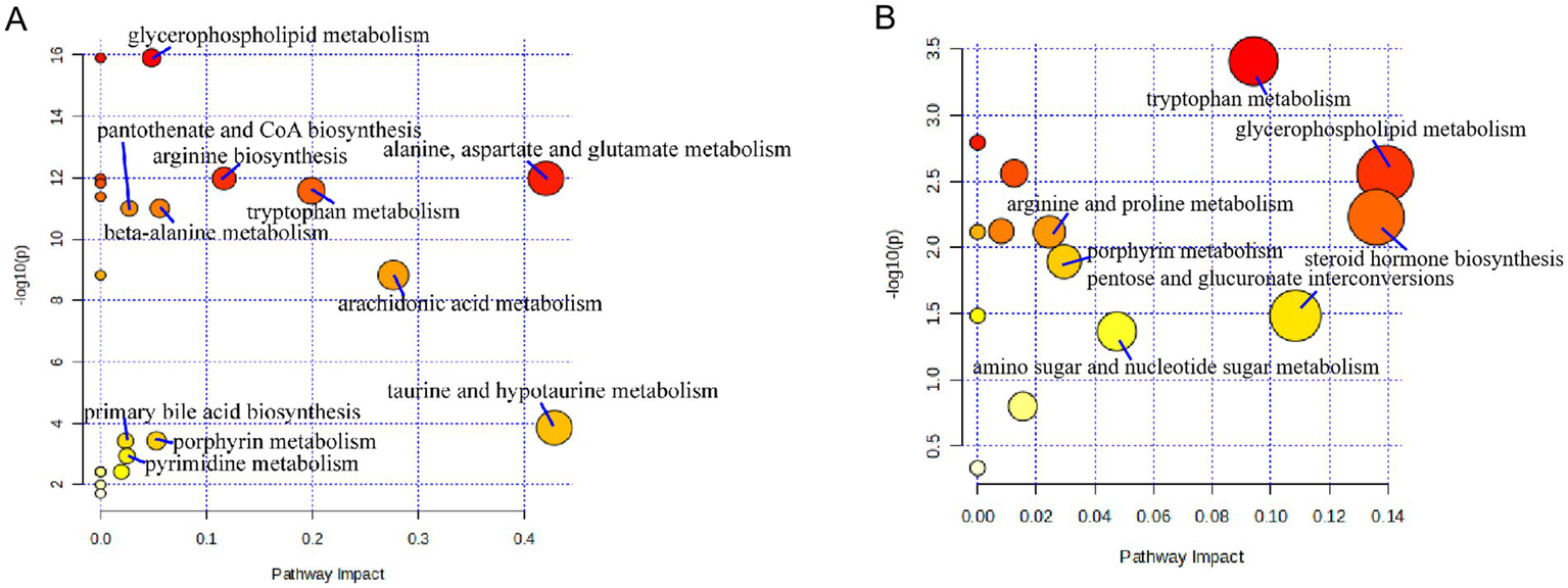 A total of 55 endogenous metabolites showed dysregulation in serum, and 51 did so in urine. Four shared differential metabolites—glycoursodeoxycholic acid, urobilin, glycocholic acid, and urobilinogen—were identified in both biofluids. Pathway enrichment analysis revealed three co - regulated metabolic pathways: tryptophan metabolism, glycerophospholipid metabolism, and porphyrin metabolism (p < 0.05).