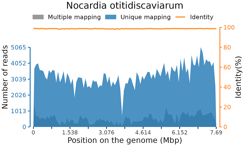 Coverage of Nocardia otitidiscaviarum detected by mNGS in BALF.