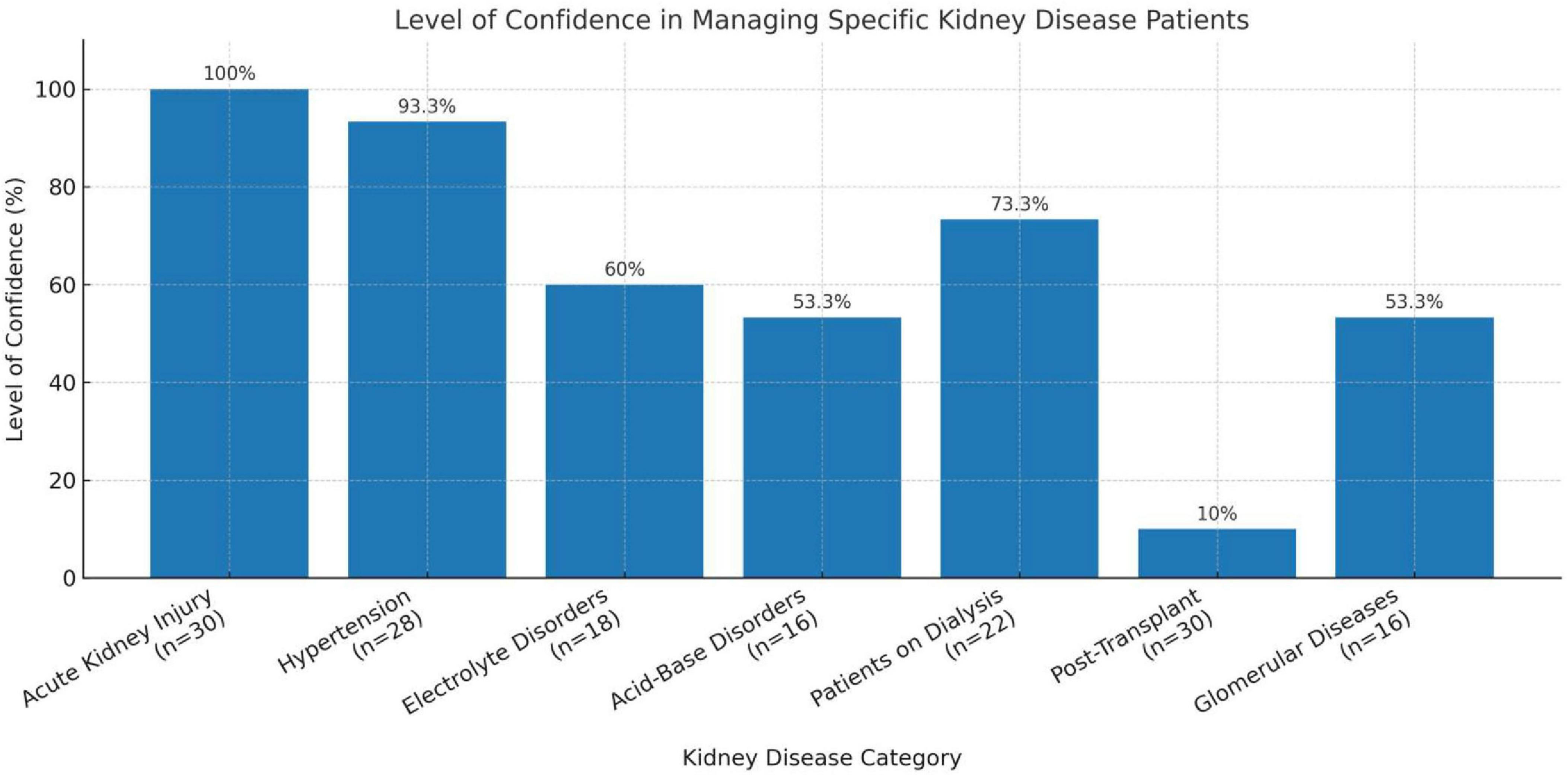 Figure 2. Level of confidence in managing specific kidney disease patients among Moi University internal medicine residents in 2023.