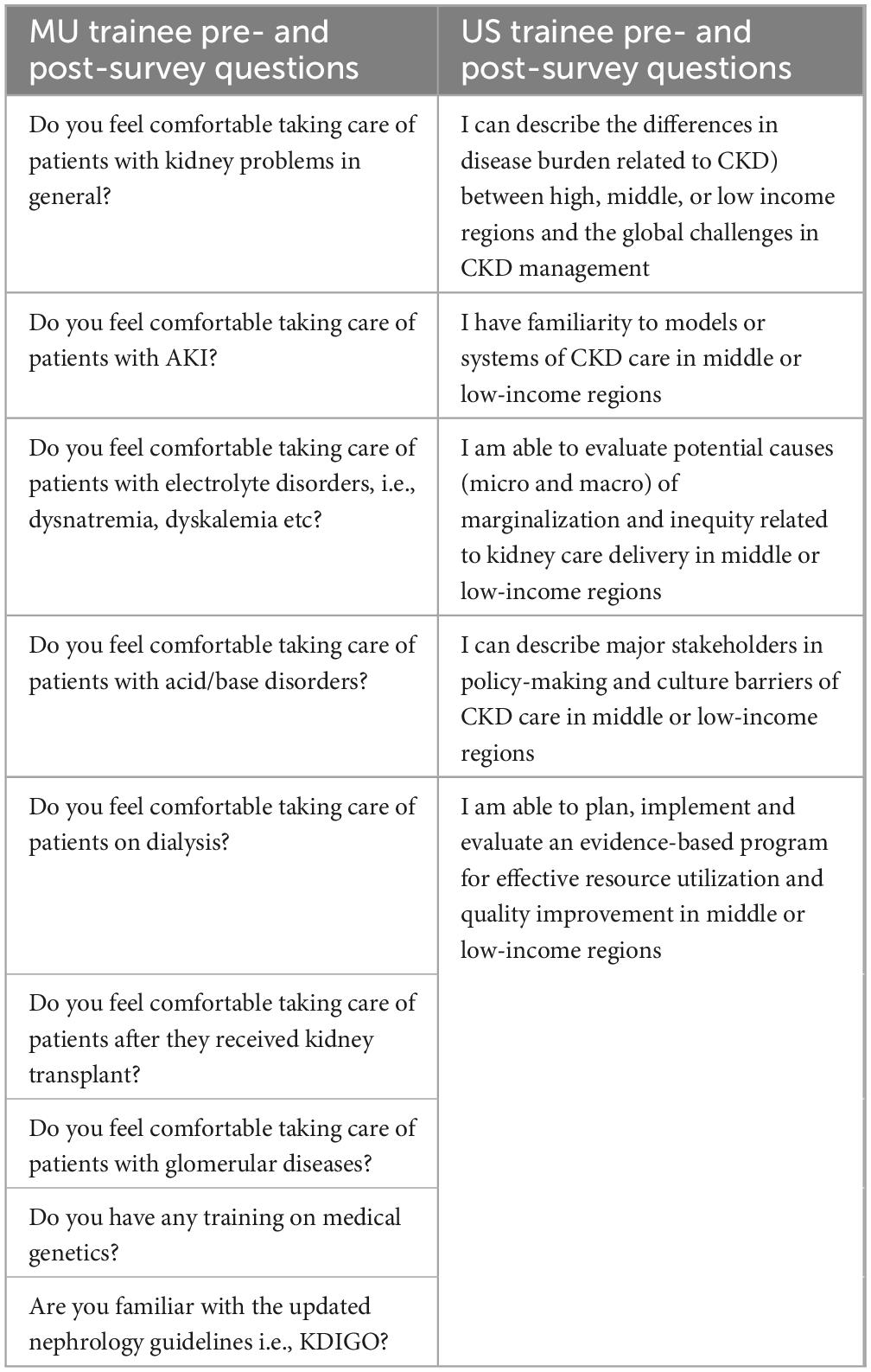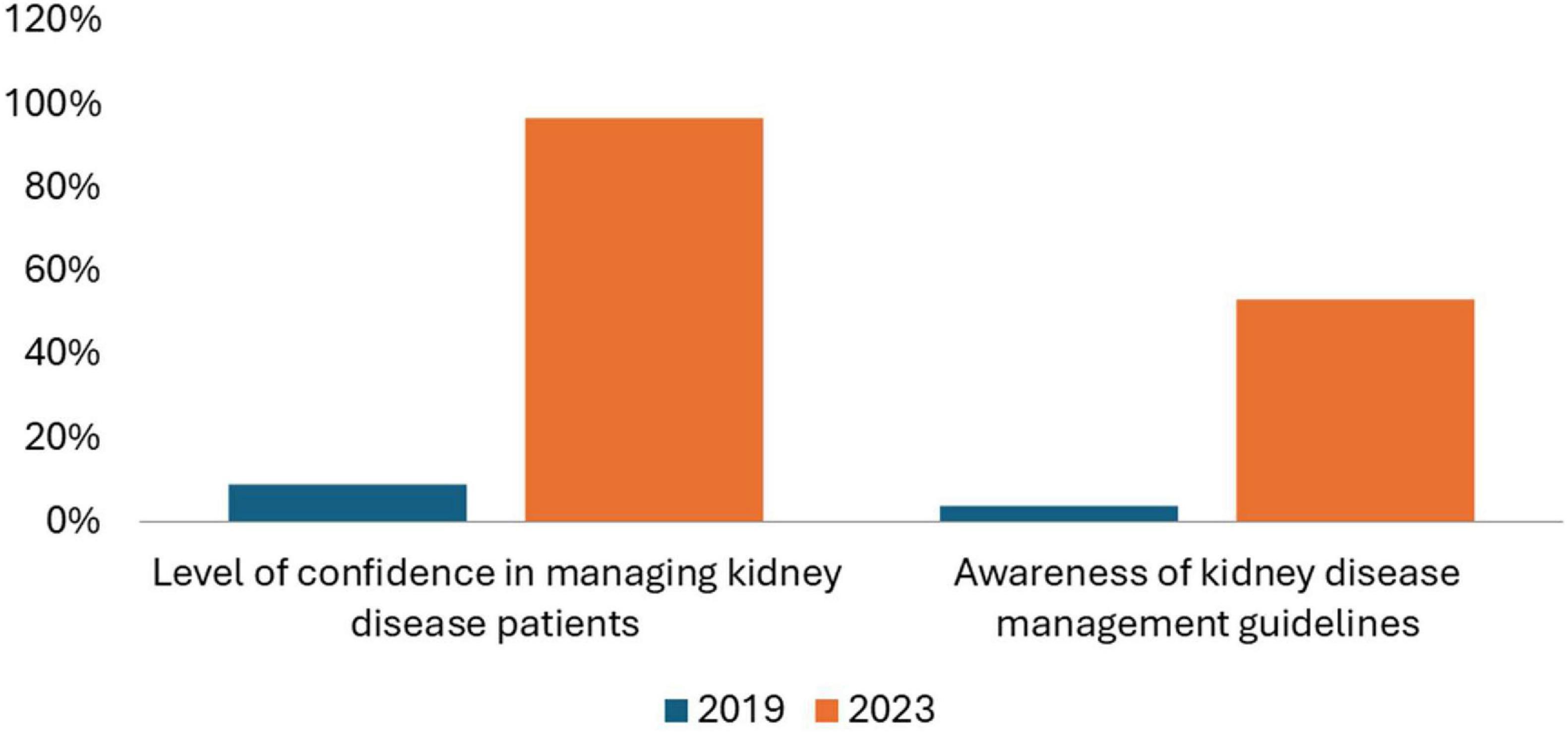 Methods: In 2019, stakeholder consultations identified key gaps in nephrology education. Targeted interventions were implemented, and a follow-up survey was conducted in 2023 among MU and BU participants to evaluate the program’s impact.
