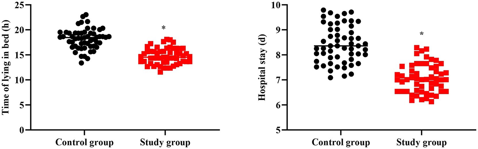 2. The time of lying in bed and hospital stay were recorded in both groups.