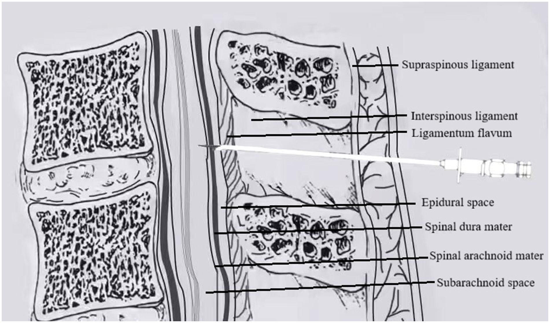 A total of 98 full-term, primigravid women with hypertensive disorders (defined as systolic blood pressure≥140 mmHg and/or diastolic blood pressure≥90 mmHg) were enrolled for labor analgesia. All participants were aged between 22 and 40 years, had a BMI ≤ 35 kg/m2, and were classified as ASA physical status II. The exclusion criteria were known allergy to local anesthetics, use of analgesics within 4 h before labor analgesia, platelet count below 100 × 109/L, or any contraindication to intrathecal anesthesia. The withdrawal criteria were the occurrence of serious adverse reactions, unintended dural puncture by the epidural needle, dural puncture by the spinal needle without cerebrospinal fluid (CSF) outflow, or patient withdrawal of consent.