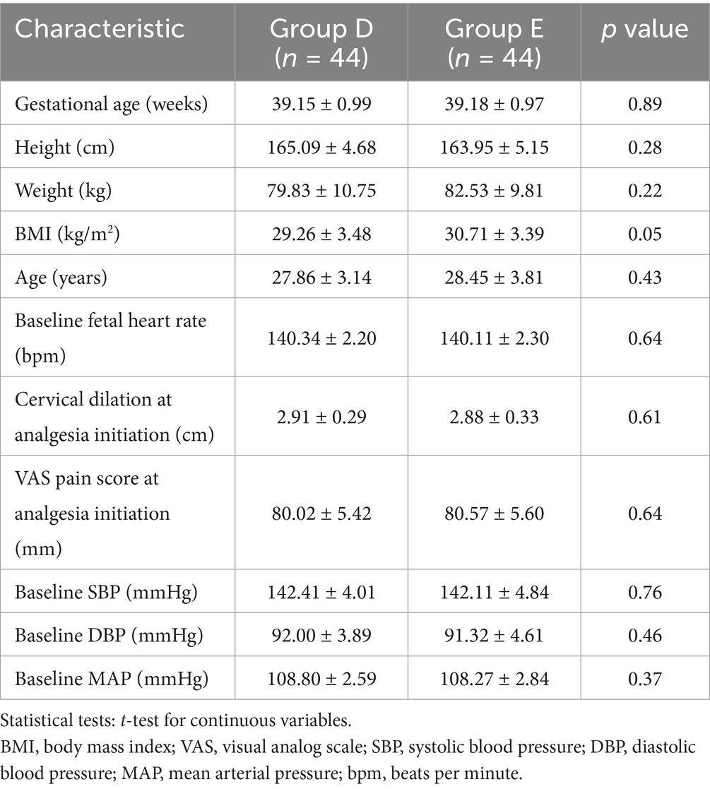 Hypertensive disorders of pregnancy, which affect 5–10% of pregnancies, are one of the leading causes of maternal and perinatal mortality (1, 2), and the associated hemodynamic instability poses a considerable challenge in the management of labor analgesia. Patients with gestational hypertension (GH) often exhibit small vessel spasms and vascular endothelial damage (3), which leads to increased sympathetic nerve activity and weakened autonomic regulation. These pathophysiological changes predispose patients to perinatal hemodynamic decompensation, subsequently compromising placental blood perfusion. Therefore, in patients with GH, labor analgesia must strike a careful balance—effectively relieving pain while minimizing hemodynamic fluctuations—to reduce the risk of eclampsia or placental perfusion insufficiency.
