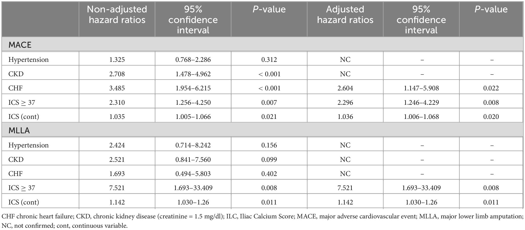 Table 4 presents the Cox proportional hazards regression analysis results for MACE and major lower limb amputation (MLLA).