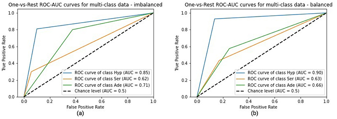 This problem of imbalanced data can be addressed in more ways: (1) Undersampling, (2) Oversampling, and (3) using the Class Weights. Since the dataset is small, we avoided using the undersampling method because it would have reduced it even more (from 152 to 90 images). As one of the initial design goals of this article was not to use synthetic data, the oversampling method is not suitable for addressing the imbalanced dataset problem. Thus, to approach this problem, the most appropriate method remained the method of using class weights. This variant is relatively easy to implement using the Scikit-learn library (46), because class weights is a hyperparameter of the LR algorithm (47).