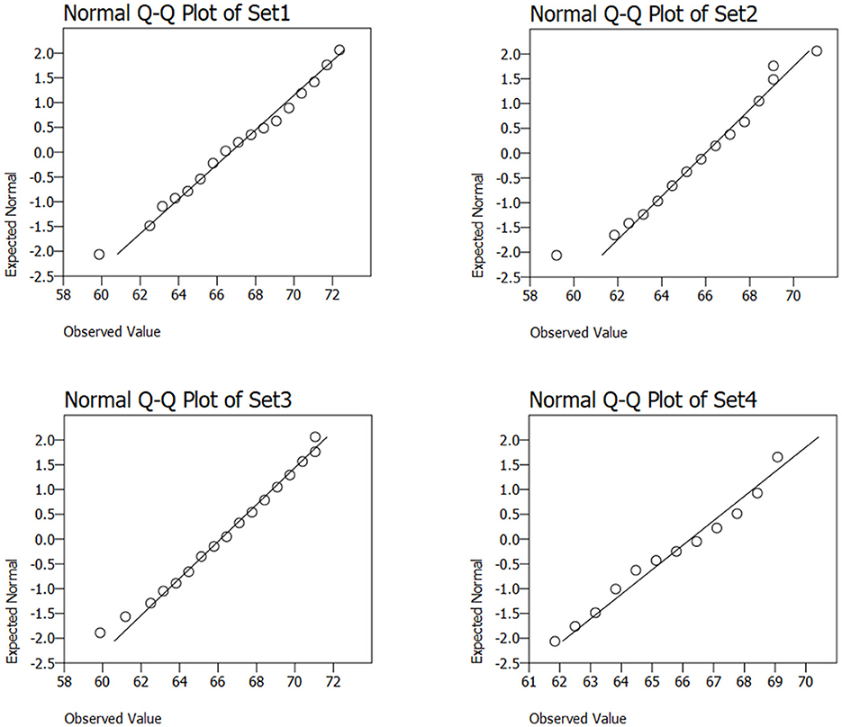 The Figure 6 revealed that Sets 1–3 shown approximate normality, with data points closely aligned along the diagonal reference line. In contrast, Set4 showed deviations at the distribution tails, suggesting possible deviation. The selection of classifiers and preprocessing techniques was influenced by these observations.