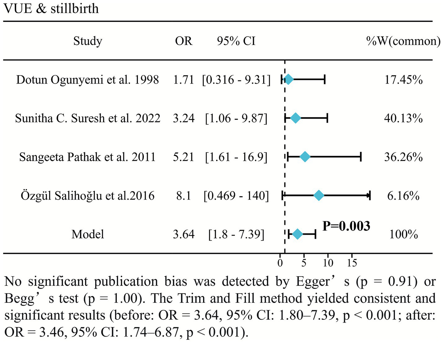 Forest plot of the association between VUE and stillbirth.
