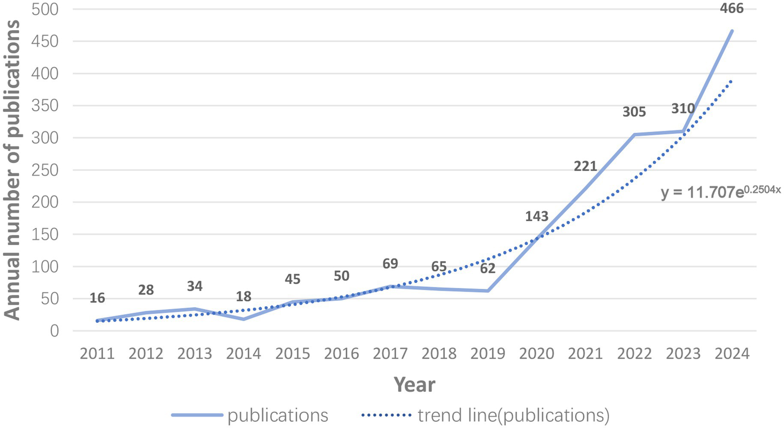 A total of 1,554 articles were extracted from the Web of Science Core Collection (WoSCC) and Scopus. We employed analytical tools such as CiteSpace and VOSviewer to identify leading topics and create visual representations of countries/regions, institutions, authors, keyword networks, and journals pertinent to this field of study.