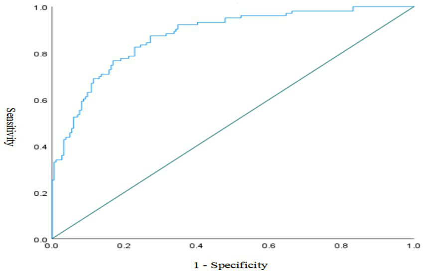 1. Calibration: The calibration of the prediction model was assessed using the Hosmer–Lemeshow (H–L) goodness-of-fit test. The test yielded a χ2 value of 6.939 with a p-value of 0.543 (p > 0.05), indicating no significant difference between the predicted and observed outcomes. This suggests that the model has good calibration.