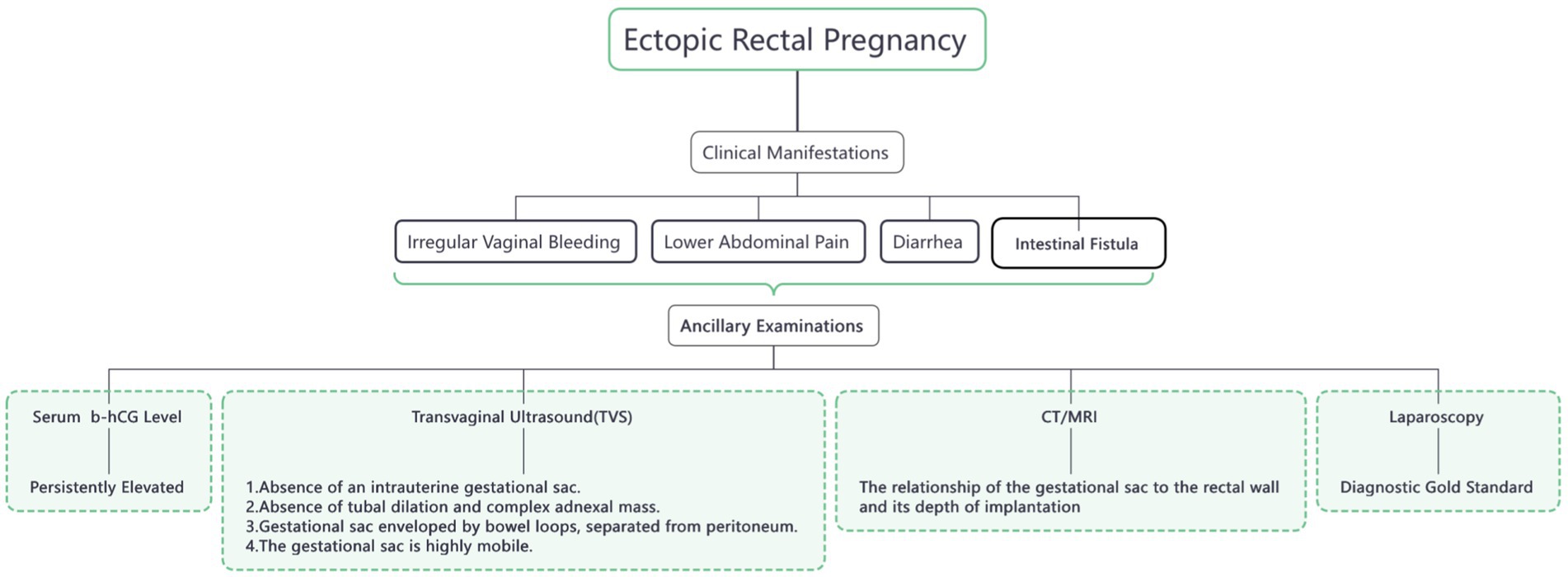 10. Thang, NM, Thi Huyen Anh, N, and Hai Thanh, P. Rectal ectopic pregnancy: a case report. Medicine. (2021) 100:e24626. doi: 10.1097/MD.0000000000024626