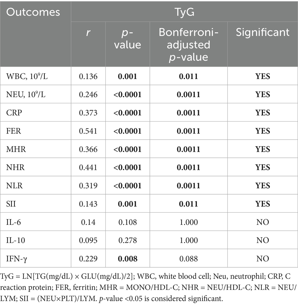Table 5. Spearman correlation analysis in TyG and inflammatory indicators.