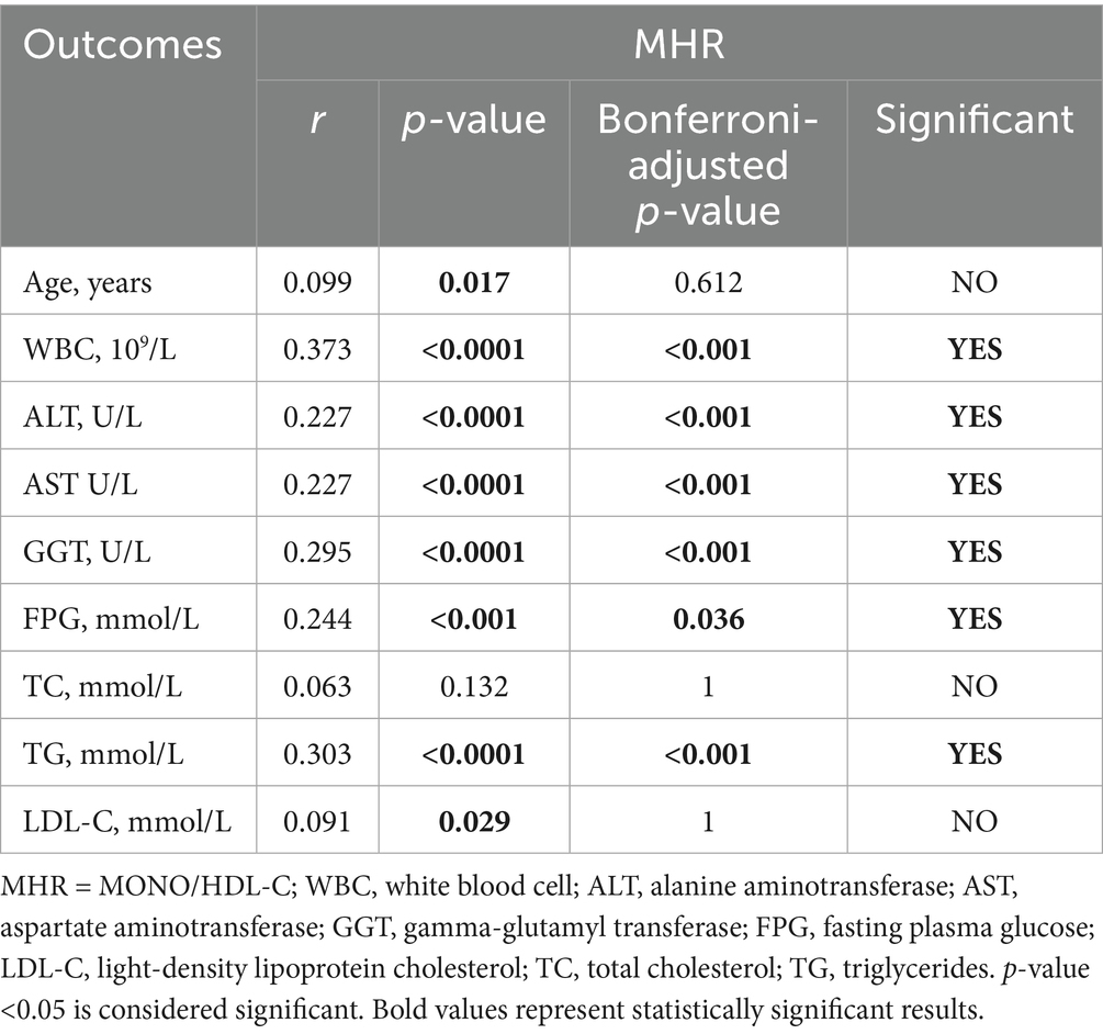 Table 6. Spearman correlation analysis in MHR and generation laboratory indicators.