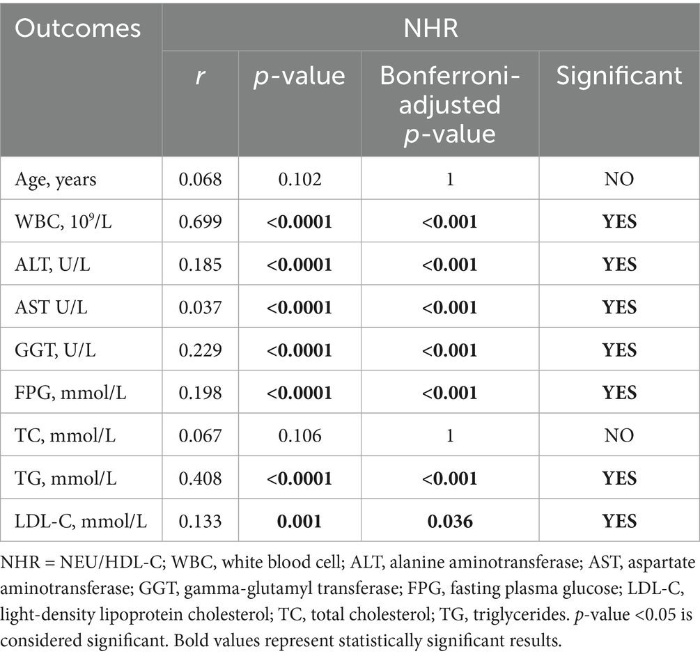 Table 7. Spearman correlation analysis in NHR and generation laboratory indicators.