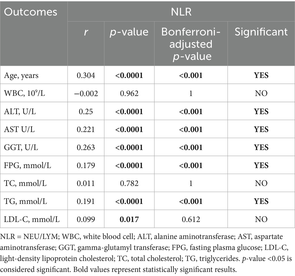 Table 8. Spearman correlation analysis in NLR and generation laboratory indicators.