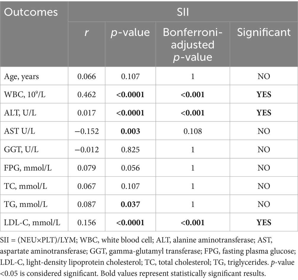 Table 9. Spearman correlation analysis in SII and generation laboratory indicators.