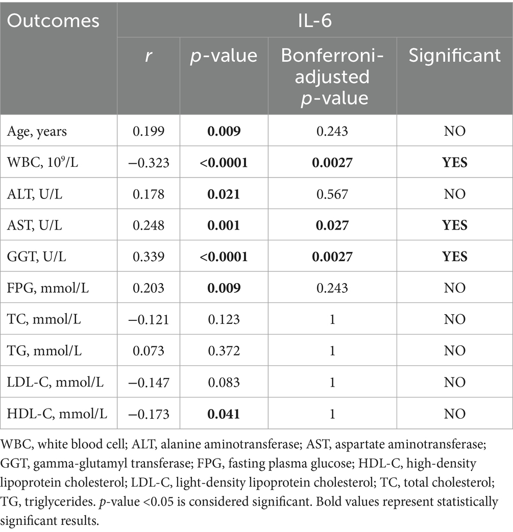 Table 10. Spearman correlation analysis in IL-6 and generation laboratory indicators.