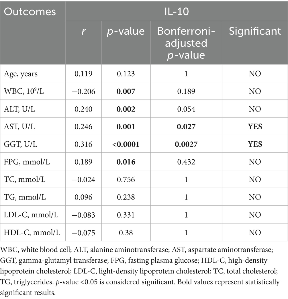 Table 11. Spearman correlation analysis in IL-10 and generation laboratory indicators.