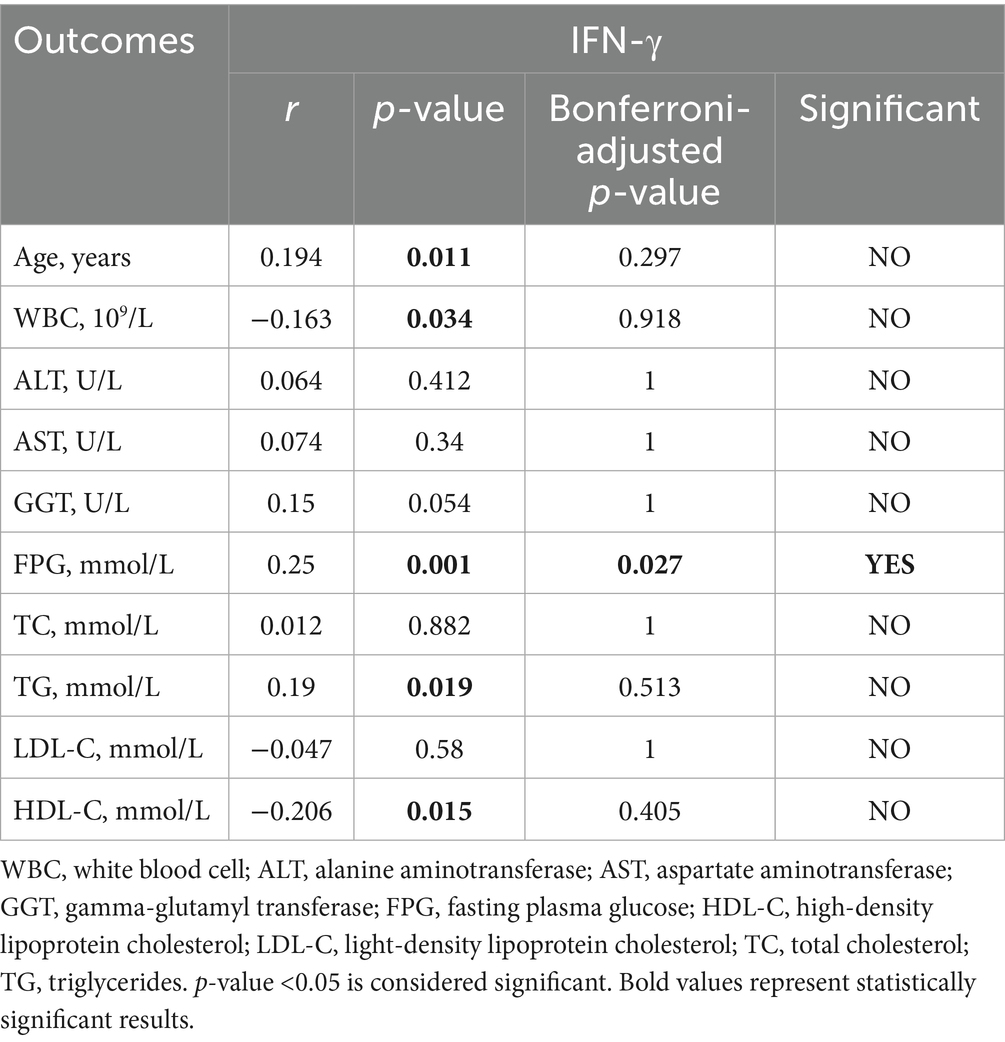 Table 12. Spearman correlation analysis in IFN-γ and generation laboratory indicators.