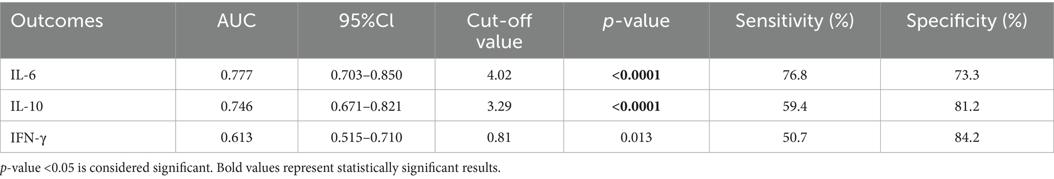 Table 14. ROC analysis of IL-6, IL-10, and IFN-γ.