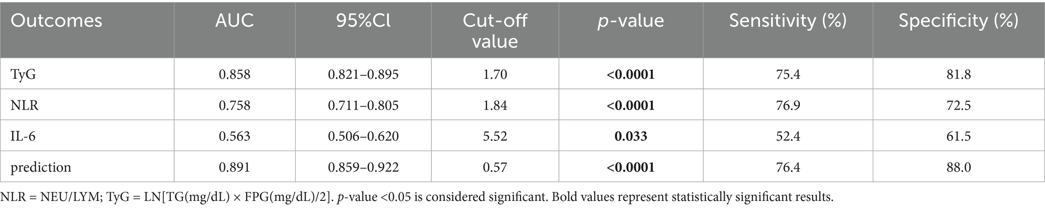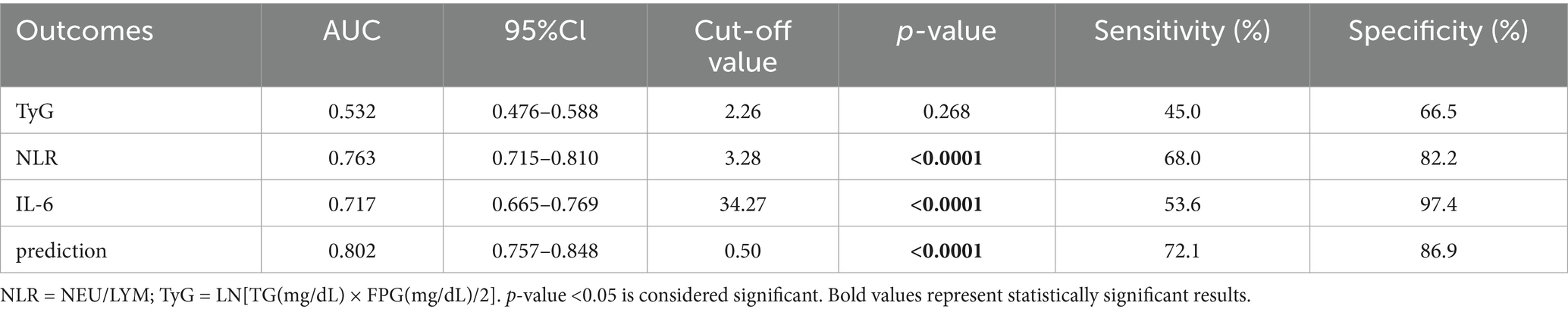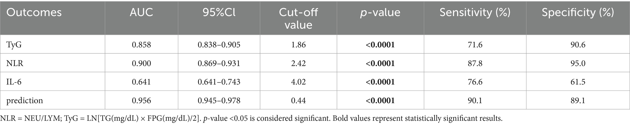 3.7 ROC-based combined diagnostic prediction of NLR, TyG, and IL-6 for T2DM-NAFLD comorbidity detection