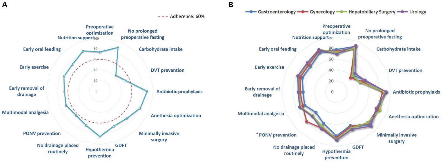 Stratified random sampling was employed, proportionate to the patient distribution across departments in each medical institution. Research data from each institution were uploaded to the platform system within 3 days of survey completion. The most significant factors influencing ERAS adherence were identified through a comprehensive analysis of completion rates for each ERAS protocol.