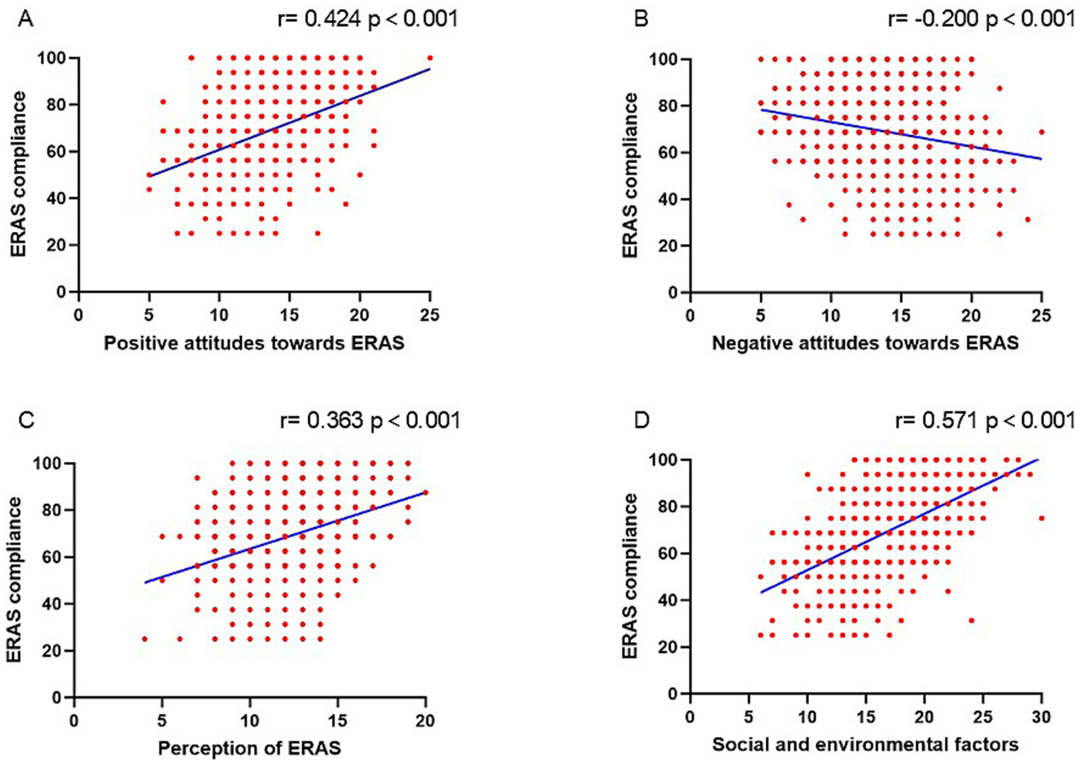 A random sample of 1,203 participants from 45 hospitals in Southwestern China was surveyed on ERAS protocol implementation, including 16 items. A questionnaire assessed awareness, attitudes, and social and environmental support factors. Multivariable linear regression model was used to analyze factors affecting ERAS adherence.