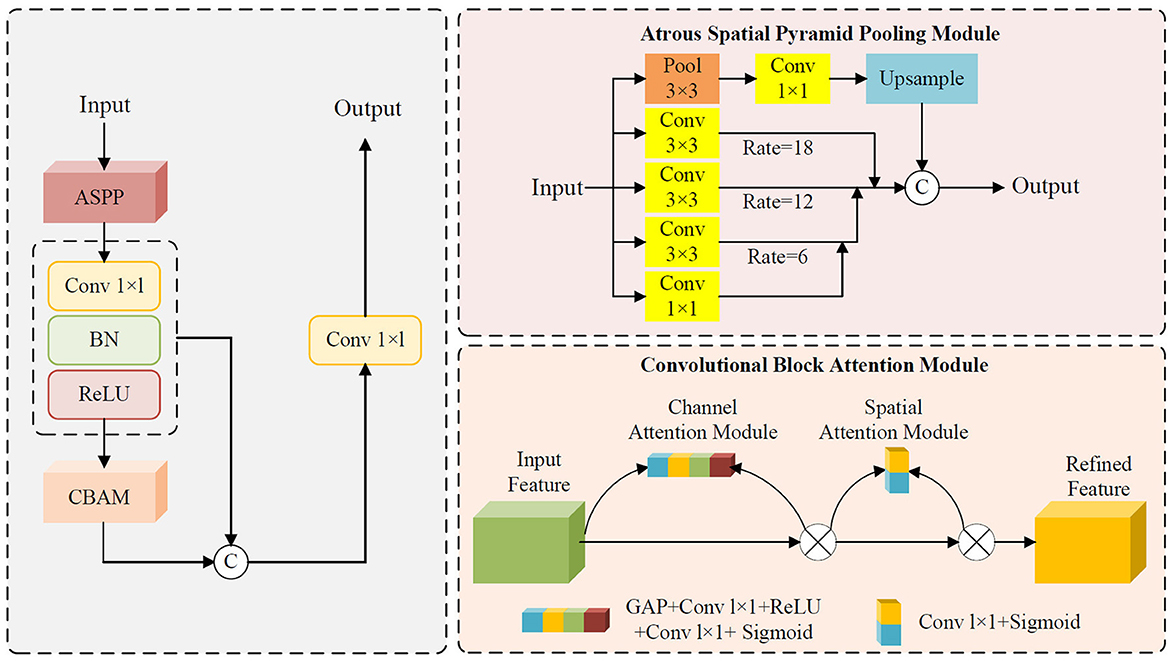 The remainder of this paper is organized as follows: Section 2 reviews the strengths and limitations of the ASPP and CBAM, along with the innovative improvements proposed in this study. Section 3 details the model training methodology and evaluation metrics. Section 4 presents the experimental results and facilitates in-depth analysis. Finally, Section 5 discusses the experimental findings, draws conclusions, and outlines future research directions.