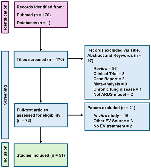 Methods: This systematic review synthesizes findings from 51 in vivo preclinical studies investigating the efficacy, delivery methods, mechanisms of action, and optimization strategies of MSC-EV interventions in experimental ARDS.