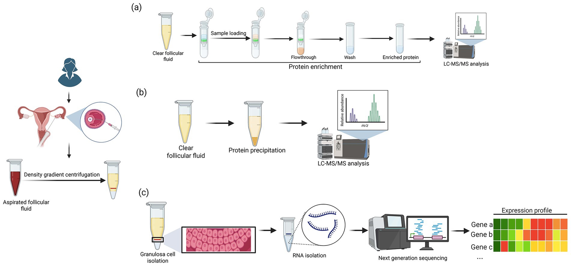 The follicular fluid collected will be subjected to percoll-mediated density gradient centrifugation. The samples will be centrifuged at 700 g for 10 min and the supernatant containing the follicular fluid proteins will be transferred to a fresh tube. Further, protein estimation will be performed using BCA assay. Since quantitative proteomics needs to be performed through in-solution trypsin digestion, the high abundant proteins present in the follicular fluid will be enriched using Proteominer enrichment kit from Bio Rad. The enriched protein fractions will be eluted, and further protein estimation was done using BCA assay. These protein samples will be resolved on a 15% SDS-PAGE gel to see the overall protein profile after protein enrichment.