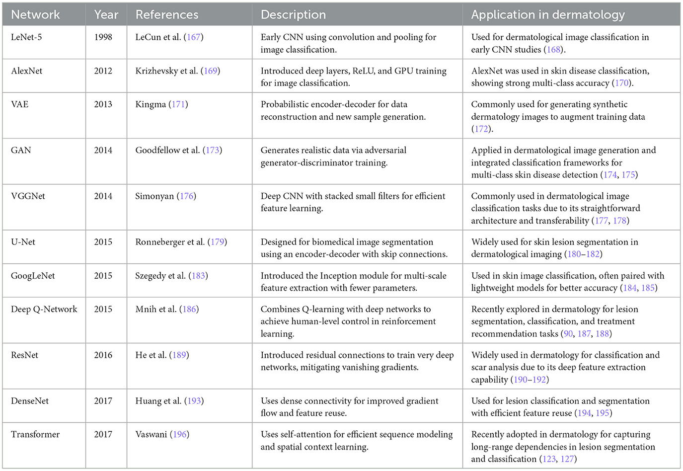 185. Santhiya S, Parvathi M, Jayadharshini P, Harish S, Navin E, Indrajith N. Automated skin disease detection using GoogLeNet and MobileNet to enhance the diagnostic accuracy with convolutional neural networks. In: 2024 2nd International Conference on Advances in Computation, Communication and Information Technology (ICAICCIT), Vol. 1. Faridabad: IEEE (2024). p. 316–9. doi: 10.1109/ICAICCIT64383.2024.10912179