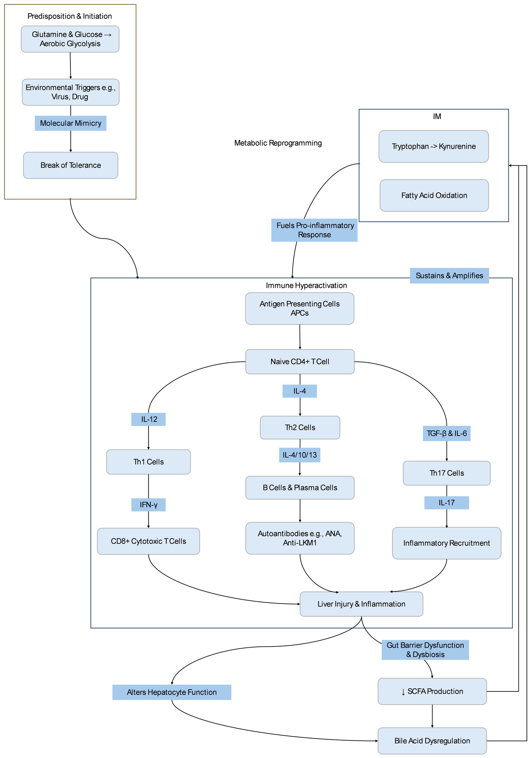 Figure 1. The self-sustaining cycle of immune-metabolic dysregulation in AIH. Adapted and revised from (1, 14).