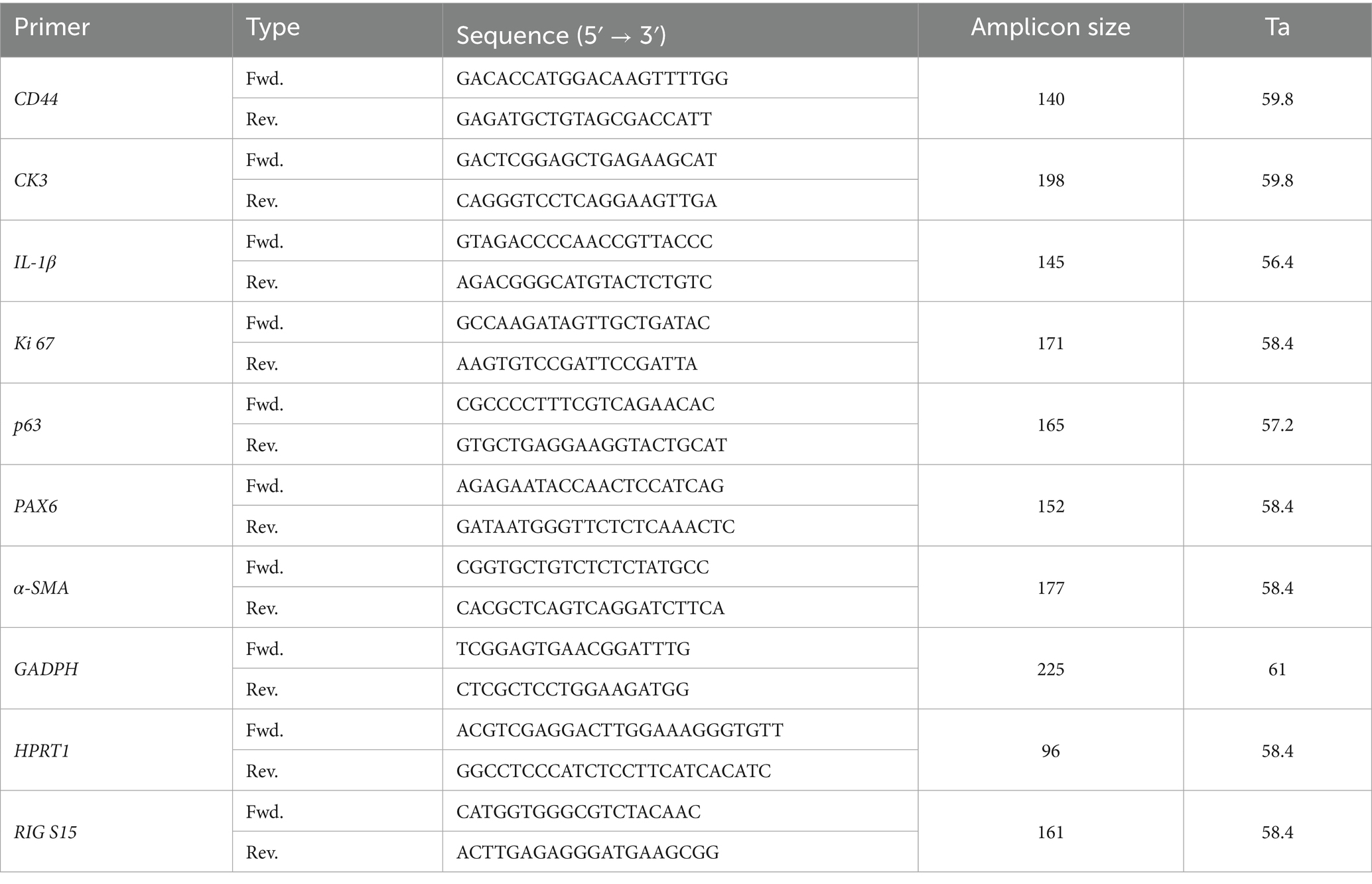 Table 1. Sequences, amplicon sizes and annealing temperatures (Ta) of the primers used in in vivo assays.