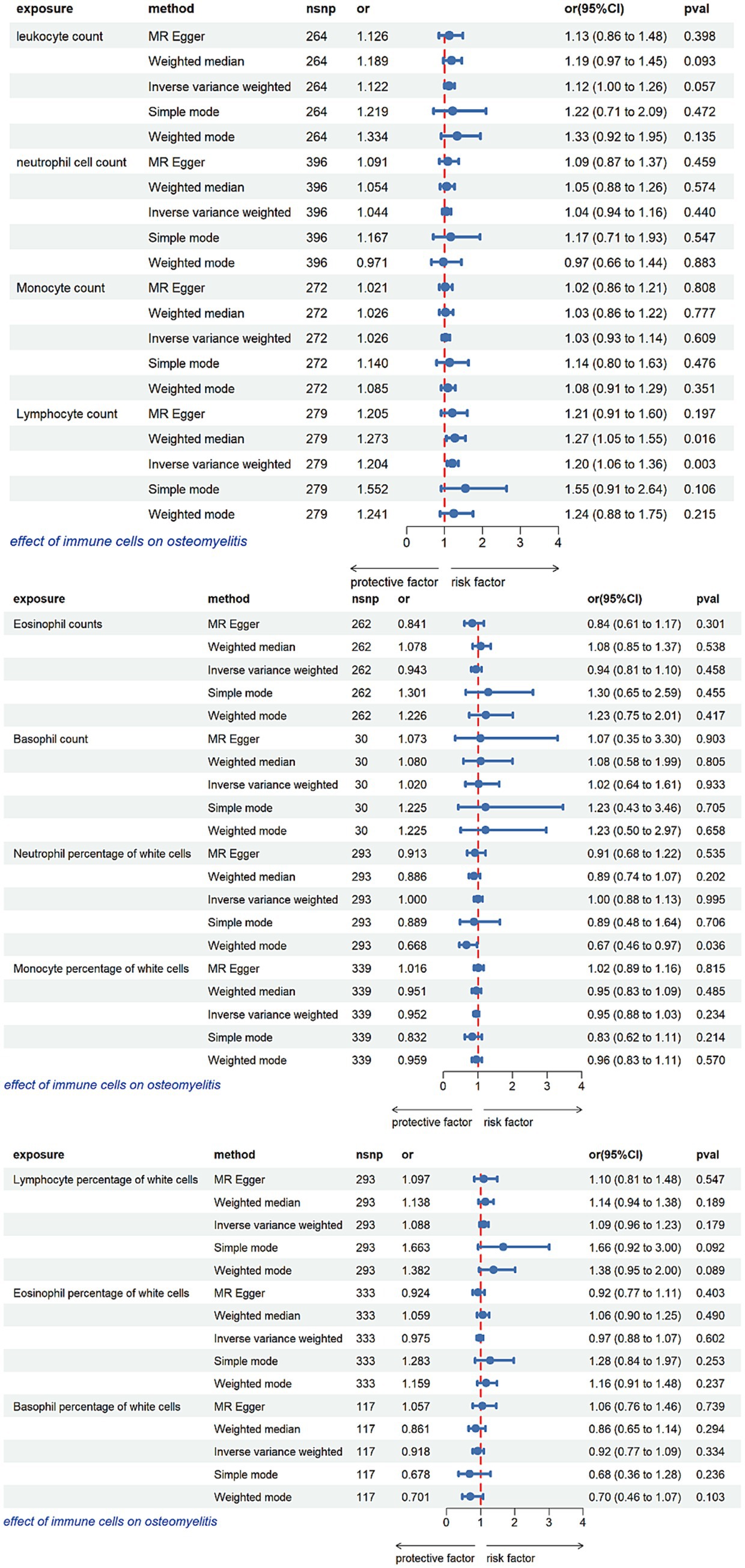 Figure 2. Mendelian randomization analysis of the causal impact of circulating immune cells on osteomyelitis.